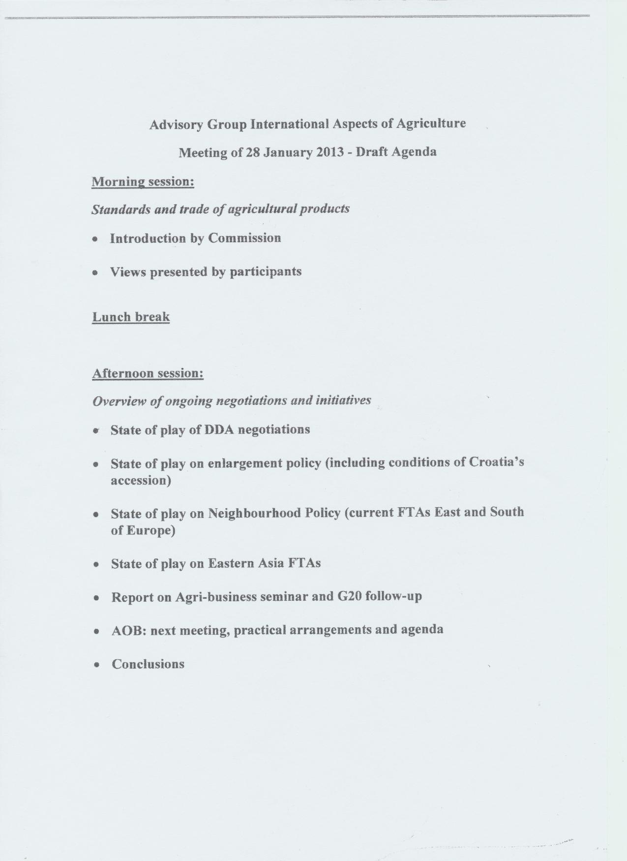 2013. gada 28. janvārī norisinājās Eiropas Komisijas Lauksaimniecības starptautisko aspektu darba grupas sanāksme Briselē. No Latvijas šajā sanāksmē piedalījās Edīte Strazdiņa.