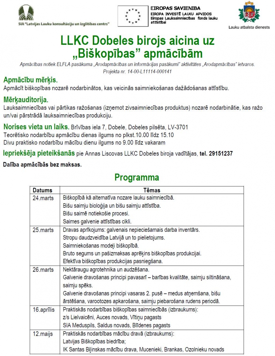 Datums: 24. Marts, 2015Reģions: ZemgaleVieta: Dobeles PIUACAdrese: Skatīt karti lielākā izmērā Nozare: LauksaimniecībaKategorija: LLKCReģions filtram: Dobeles novads