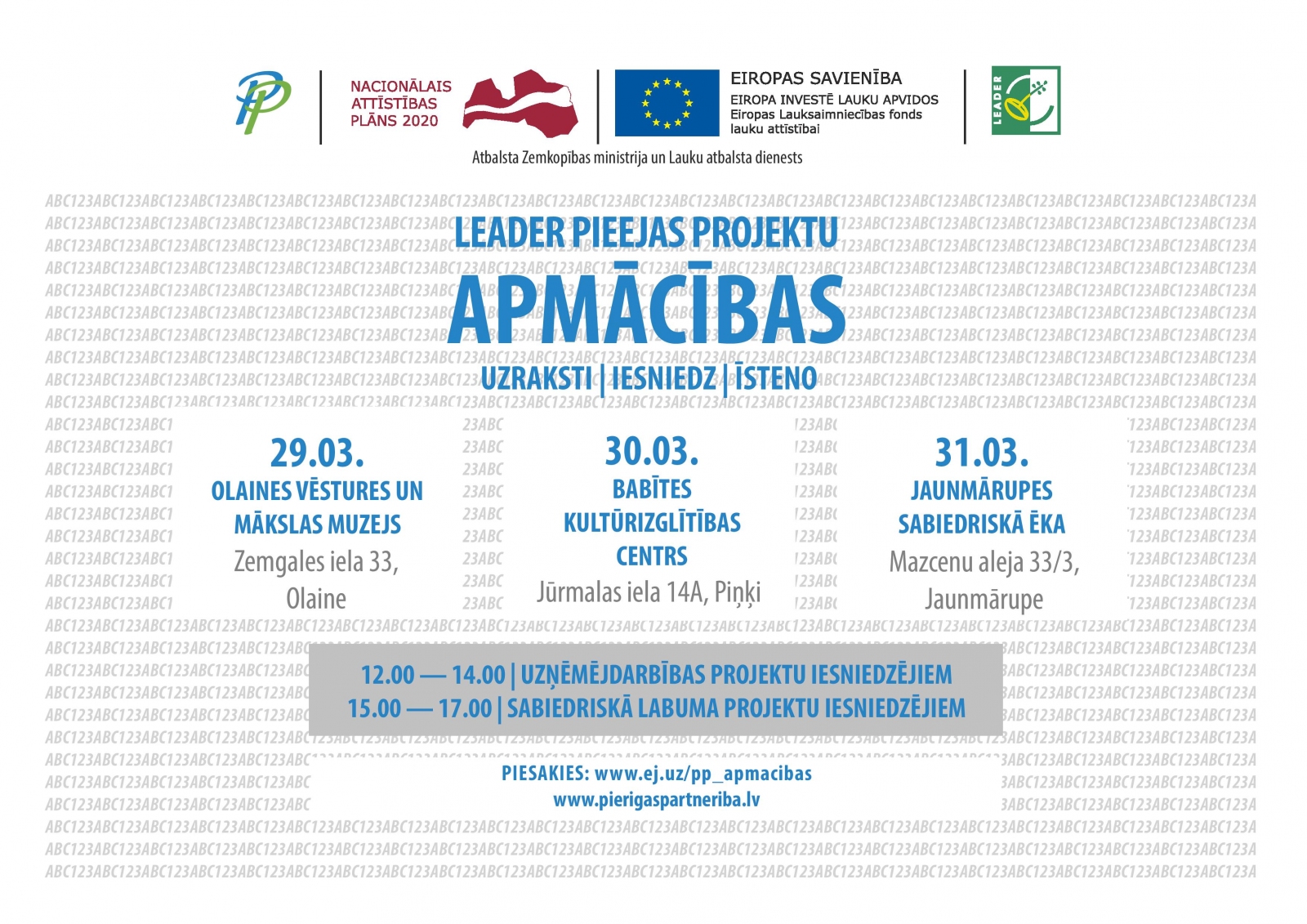 Jautājumi un pieteikšanās apmācībām, www.ej.uz//pp_apmacibas vai Mazcenas aleja 33/3, Jaunmārupe, Mārupes novadā, pa tel. 28 644 888 vai e-pastu info@pierigaspartneriba.lv.