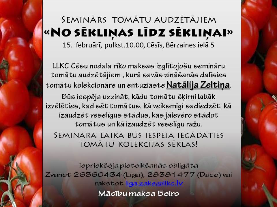 Cēsīs, Bērzaines ielā 5, 15. februārī plkst. 10:00 notiks maksas seminārs tomātu audzētājiem “No sēkliņas līdz sēkliņai”