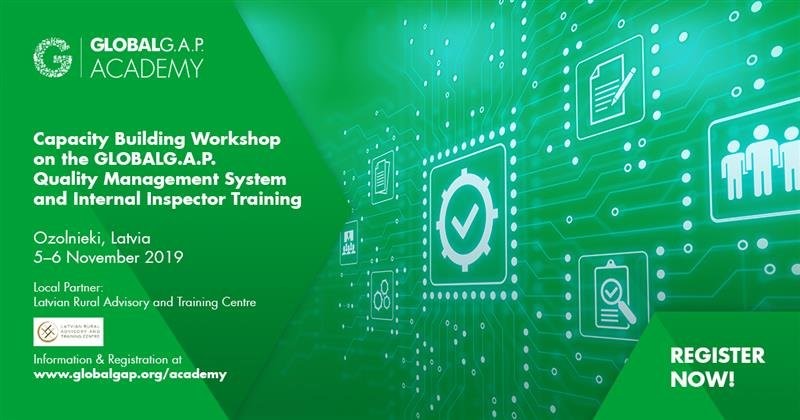 5.-6.11.2019. divu dienu mācības par kvalitātes vadības sistēmu, strādājot ar GlobalG.A.P. standarta sertifikāciju ražotāju grupām un iekšējo inspektoru kurss