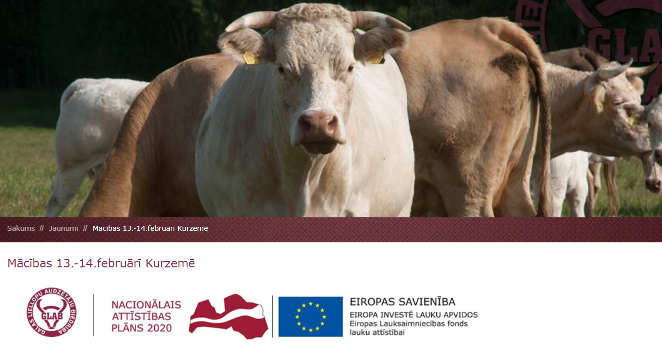 13.un 14.februārī aicinām uz nākošajām mācībām gaļas liellopu audzētājiem "Zālāju uzturēšana un kopšana ar mērķi nodrošināt pilnvērtīgu barību liellopiem. Dažāda vecuma un kategorijas liellopu barošana.". Šoreiz Kurzemē, viesnīcas Hotel Demians telpās (2.stāvs), Rīgas iela 10a, Saldus. Lektori - prof. Daina Kairiša, prof. Aleksandrs Adamovičs, Iveta Gūtmane.