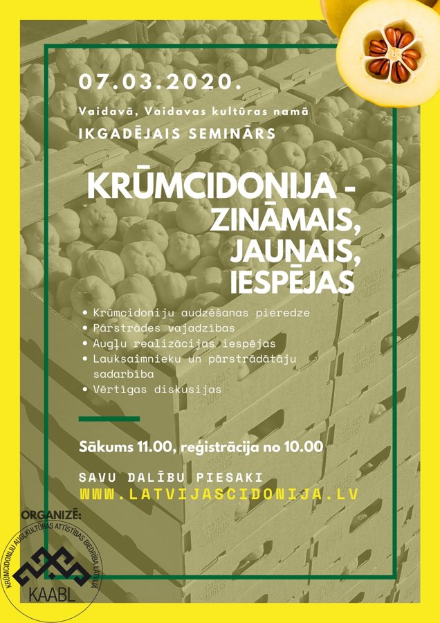 Datums: 7. Marts, 2020Reģions: VidzemeVieta: Vaidavas kultūras un amatniecības centrsAdrese: Skatīt karti lielākā izmērā Nozare: LauksaimniecībaKontaktinformācija: Tālr. 27129624Reģions filtram: * Kocēnu novads