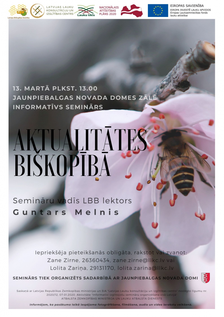 Biškopji aicināti uz informatīvu bezmaksas semināru "Aktualitātes biškopībā", kurš norisināsies 13. martā plkst.13.00 Jaunpiebalgā.