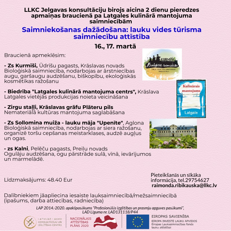 LLKC Jelgavas konsultāciju birojs aicina 2 dienu pieredzes apmaiņas braucienā pa Latgales kulinārā mantojuma saimniecībām 16., 17.martā