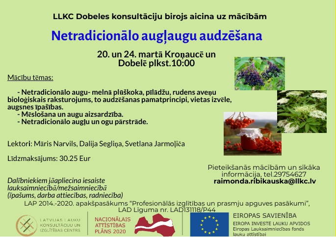 Dobele | 20., 24.03. Mācības netradicionālo augļaugu audzēšanā un pārstrādē