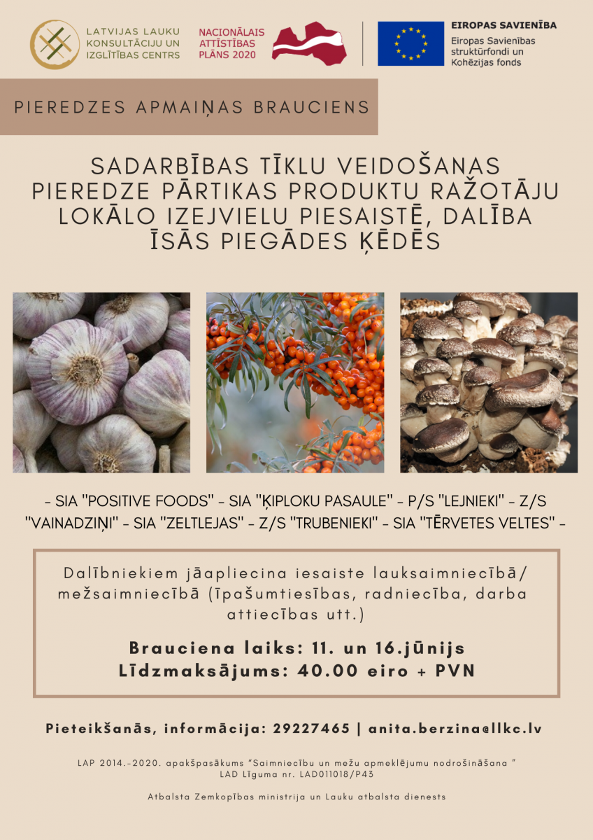 Lai pieteiktos un uzzinātu vairāk, lūgums zvanīt vai rakstīt (e-pastā, sms, whatsapp) Anitai Bērziņai (anita.berzina@llkc.lv, t.n.29227465).
