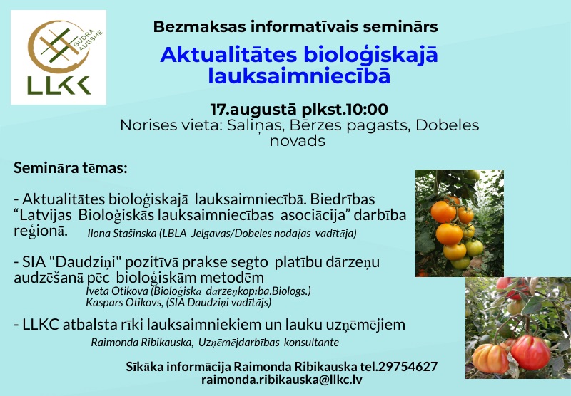 Datums: 17. Augusts, 2020Reģions: ZemgaleVieta: SIA DaudziņiAdrese: Skatīt karti lielākā izmērā Nozare: LauksaimniecībaKontaktinformācija: Raimonda Ribikauska, tel. 26316459, e pasts:raimonda.ribikauska@llkc.lvKategorija: Lauku tīklsReģions filtram: Dobeles novads