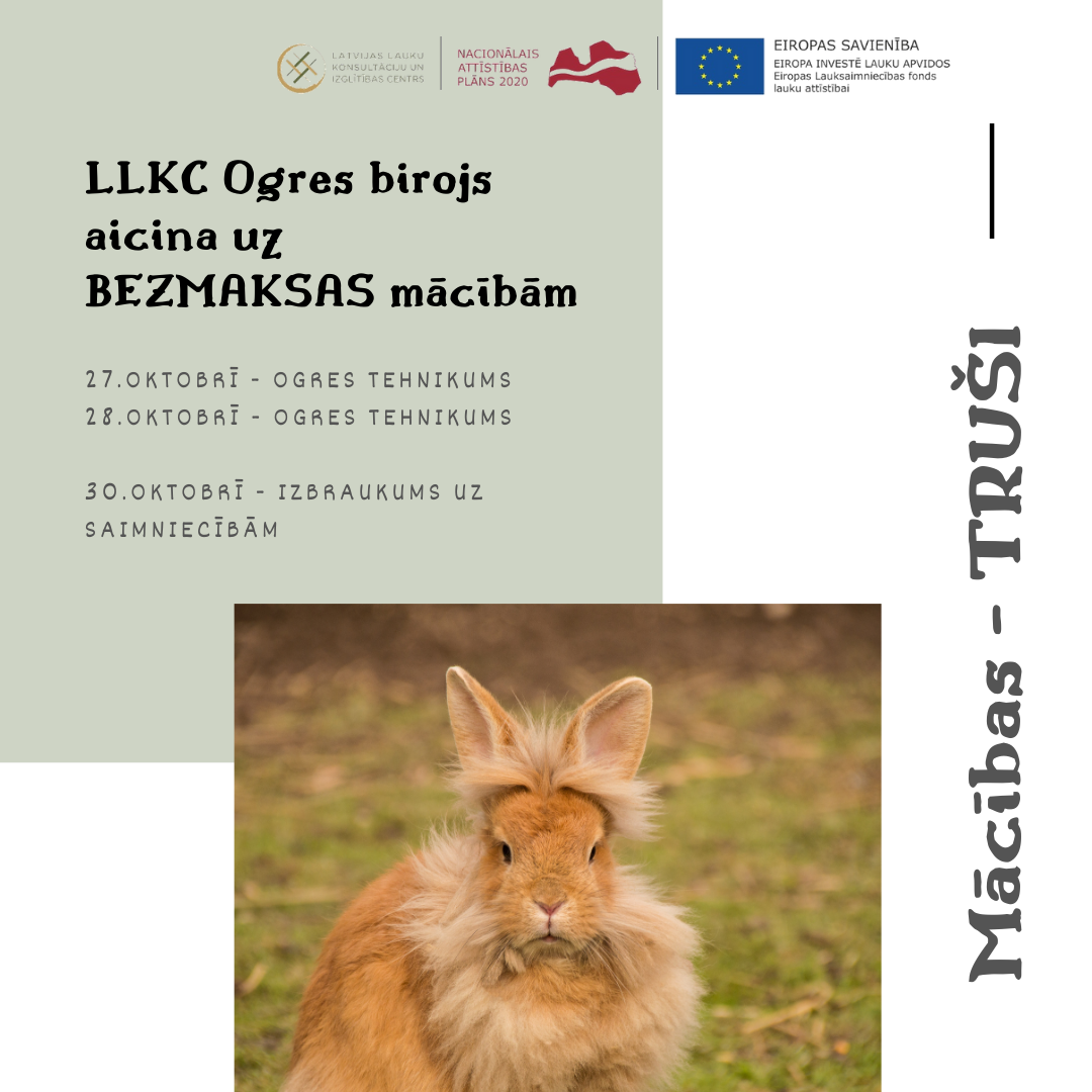 SIA LLKC Ogres birojs aicina uz bezmaksas mācībām “Lauksaimniecības dzīvnieku labturības prasības ražojošās saimniecībās” par TRUŠIEM.