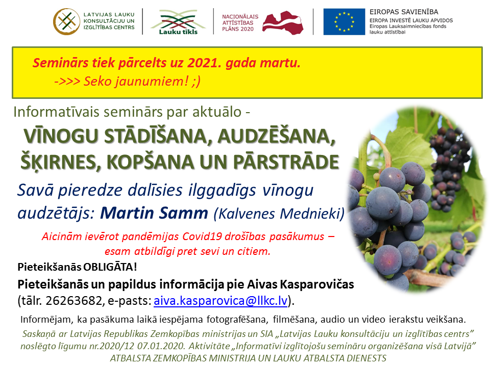 Informatīvais seminārs par aktuālo - VĪNOGU STĀDĪŠANA, AUDZĒŠANA, ŠĶIRNES, KOPŠANA UN PĀRSTRĀDE.