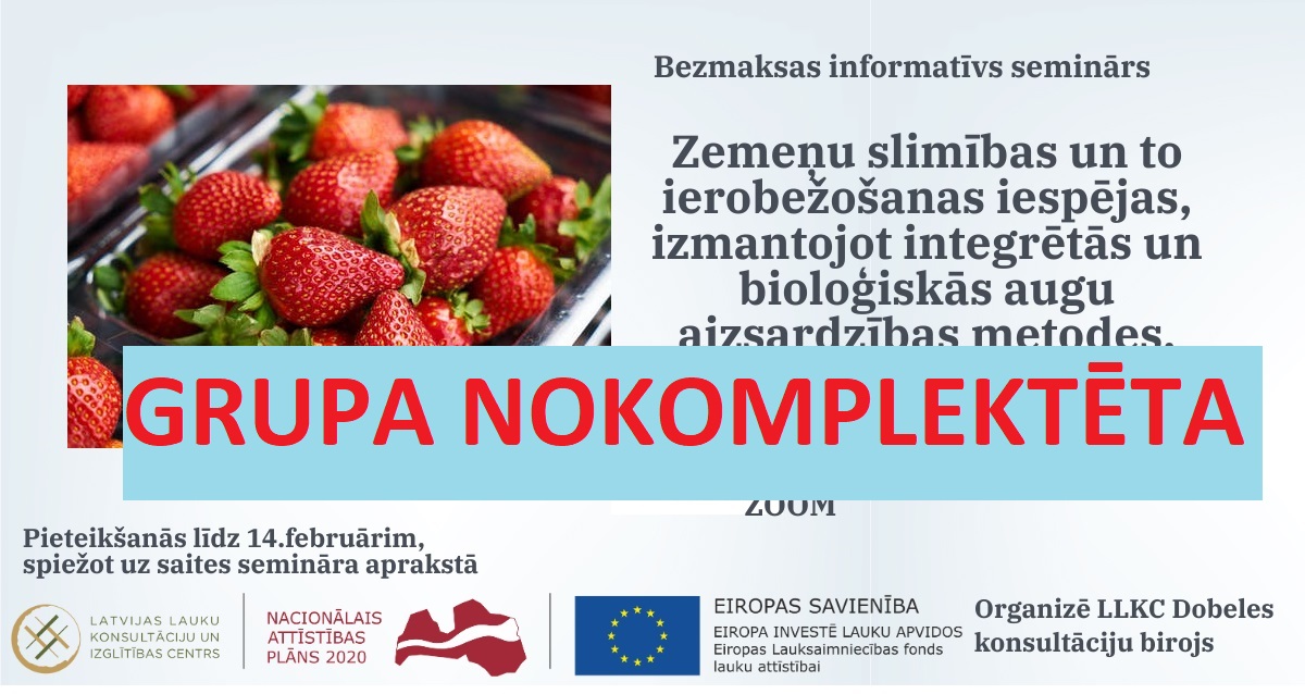 "Zemeņu slimības un to ierobežošanas iespējas, izmantojot integrētās un bioloģiskās augu aizsardzības metodes. Aktualitātes lauksaimniekiem." tiešsaistes platformā ZOOM.