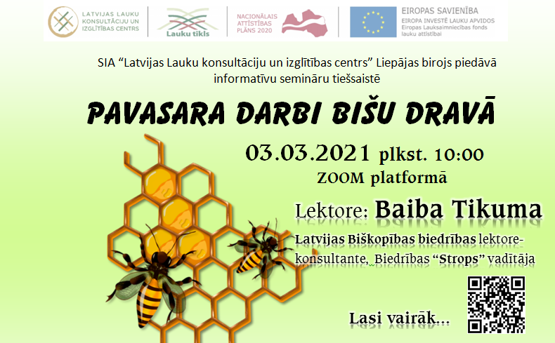 SIA "Latvijas Lauku konsultāciju un izglītības centrs" Liepājas birojs piedāvā bezmaksas tiešsaistes informatīvo semināru - PAVASARA DARBI BIŠU DRAVĀ.