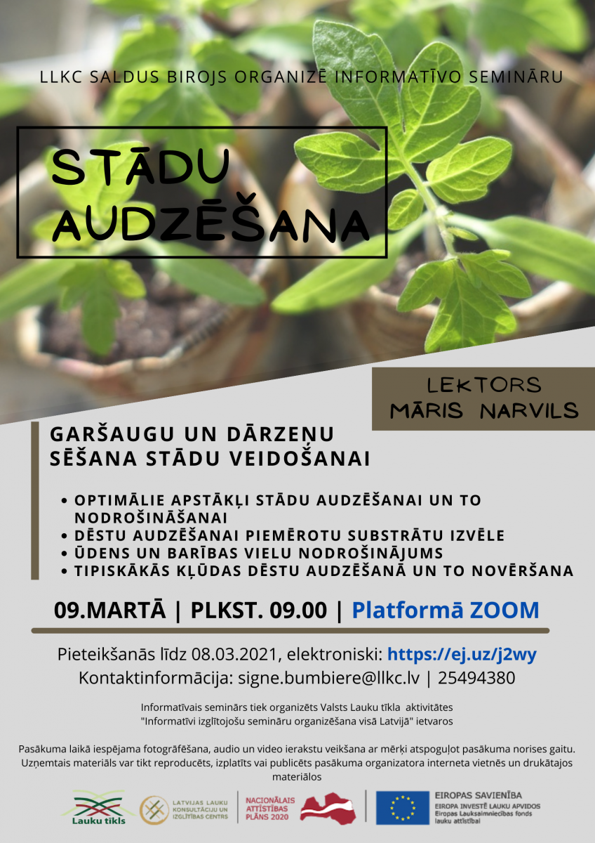 LLKC Saldus konsultāciju birojs aicina Jūs apmeklēt informatīvo semināru “Garšaugu un dārzeņu sēšana, stādu veidošanai”, kurš tiek organizēts Valsts Lauku tīkla pasākuma ietvaros.