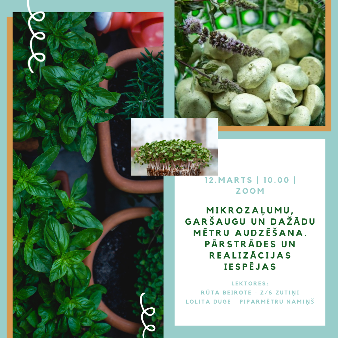 SIA LLKC Ogres birojs aicina dārzkopības interesentus un arī tos, kuru palodzes ilgojas pēc kāda pavasara zaļuma, uz tiešsaistes nodarbību "Mikrozaļumu, garšaugu un dažādu mētru audzēšana. Pārstrādes un realizācijas iespējas"