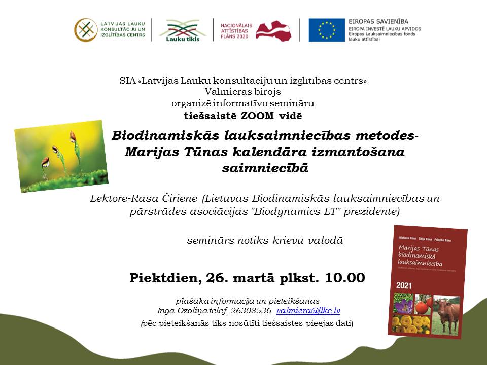 SIA "Latvijas Lauku konsultāciju un izglītības centrs" Valmieras birojs 26.martā ZOOM tiešsaistē rīko informatīvo semināru