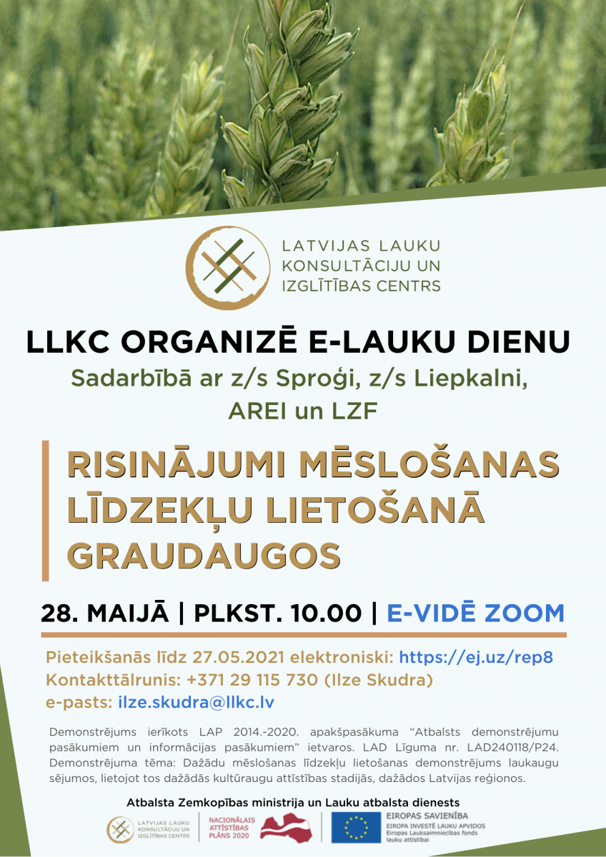e-Lauku dienā būs iespēja uzzināt saimniecību pieredzi graudaugu audzēšanā, iegūt informāciju par graudaugu šķirņu ziemcietību un mēslošanas līdzekļu salīdzinājuma demonstrējuma rezultātiem.