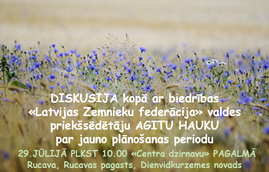 Biedrība “Latvijas Zemnieku federācija” informē, ka diskusijas laikā tiks fotografēts, un šie materiāli var tikt izmantoti publicitātes nolūkos.