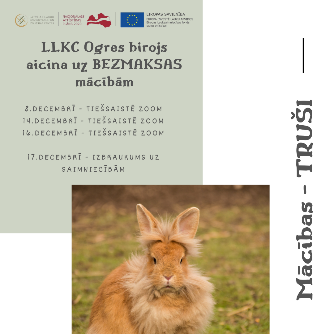 SIA LLKC Ogres birojs aicina uz bezmaksas mācībām “Lauksaimniecības dzīvnieku labturības prasības ražojošās saimniecībās” par TRUŠIEM.