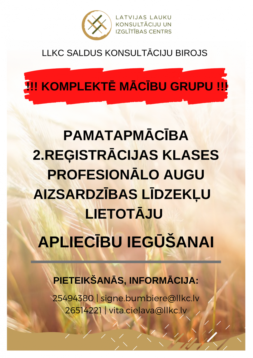 Pieteikties un sīkāku informāciju iespējams saņemt pie LLKC Saldus biroja konsultantēm: