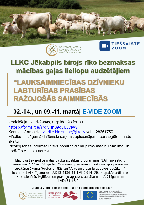Marta sākumā LLKC Jēkabpils birojs rīko bezmaksas mācības gaļas liellopu audzētājiem.