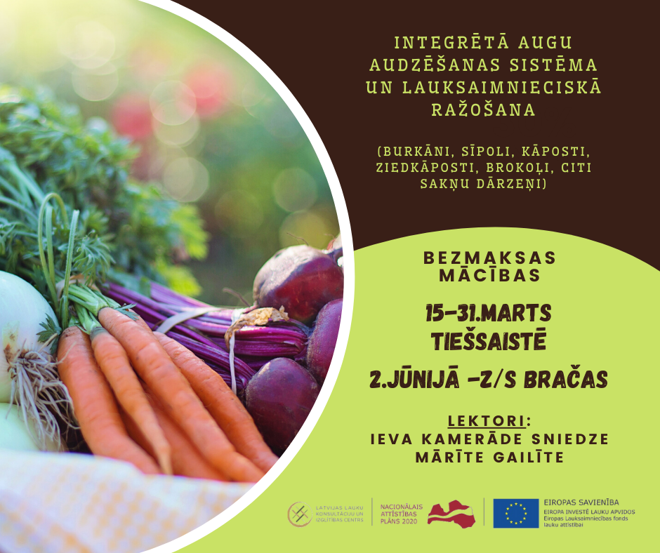 SIA LLKC Ogres birojs aicina uz 32h bezmaksas mācībām “Integrētā augu audzēšanas sistēma un lauksaimnieciskā ražošana” (burkāni, sīpoli, kāposti, ziedkāposti, brokoļi, citi sakņu dārzeņi)
