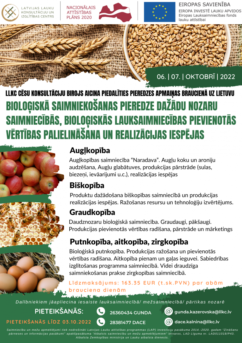 LLKC Cēsu konsultāciju birojs aicina doties divu dienu pieredzes apmaiņas braucienā uz Lietuvu.