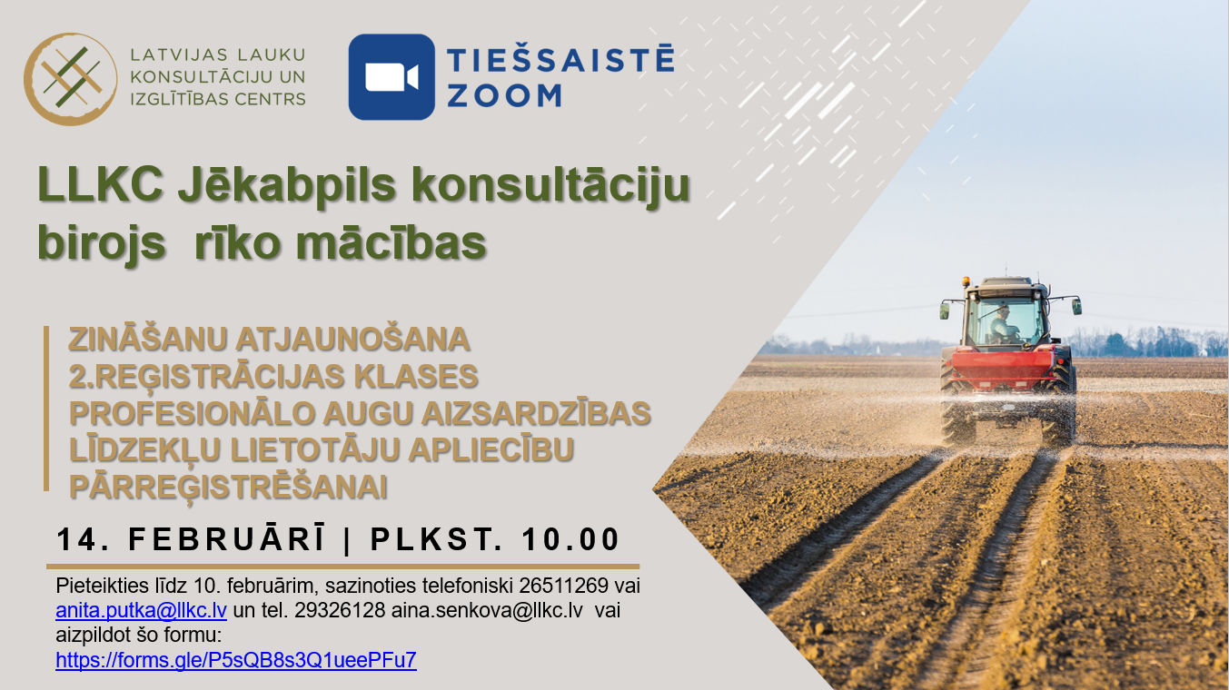 LLKC Jēkabpils birojs 14.02. rīko mācības augu aizsardzības līdzekļu lietotāju apliecību pārreģistrēšanai.