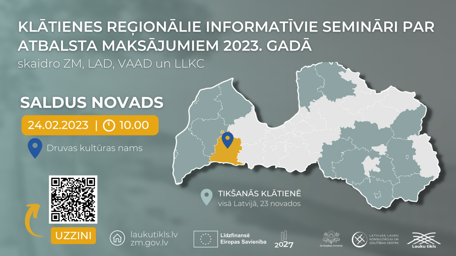 Aicinām uz semināru 24. februārī plkst. 10.00 - Druvas kultūras namā, Vienības ielā 15-17, Druvā, Saldus novadā.