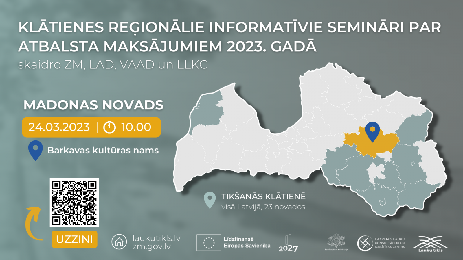 Latvijas Lauku konsultāciju un izglītības centra Madonas konsultāciju birojs aicina uz reģionālo semināru par atbalsta maksājumiem 2023.gadā.
