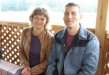 Maija Blauma ar dēlu Normundu izrāda jauno kalti un graudu torni.
