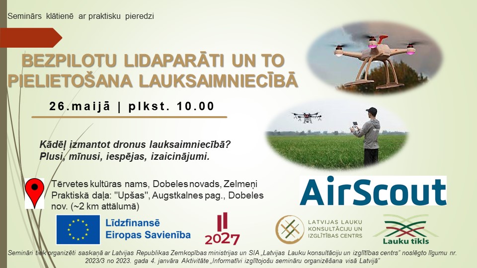 LLKC Jelgavas konsultāciju birojs aicina uz semināru klātienē “ Bezpilotu lidaparāti (droni) un to pielietošana lauksaimniecībā”