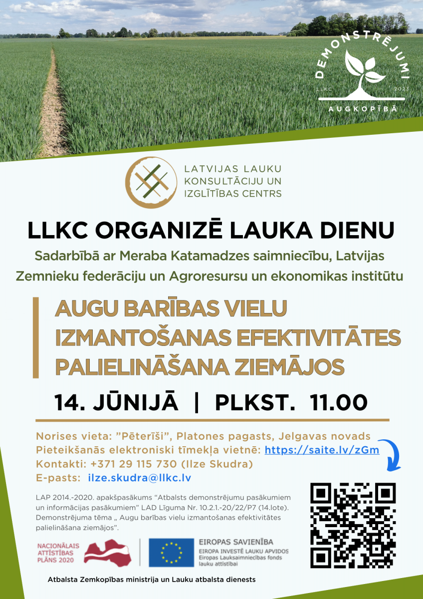 LLKC sadarbībā ar Meraba Katamadzes saimniecību (Platones pagasts, Jelgavas novads), Latvijas Zemnieku federāciju un Agroresursu un ekonomikas institūtu aicina apmeklēt lauka dienu “Augu barības vielu izmantošanas efektivitātes palielināšana ziemājos”.