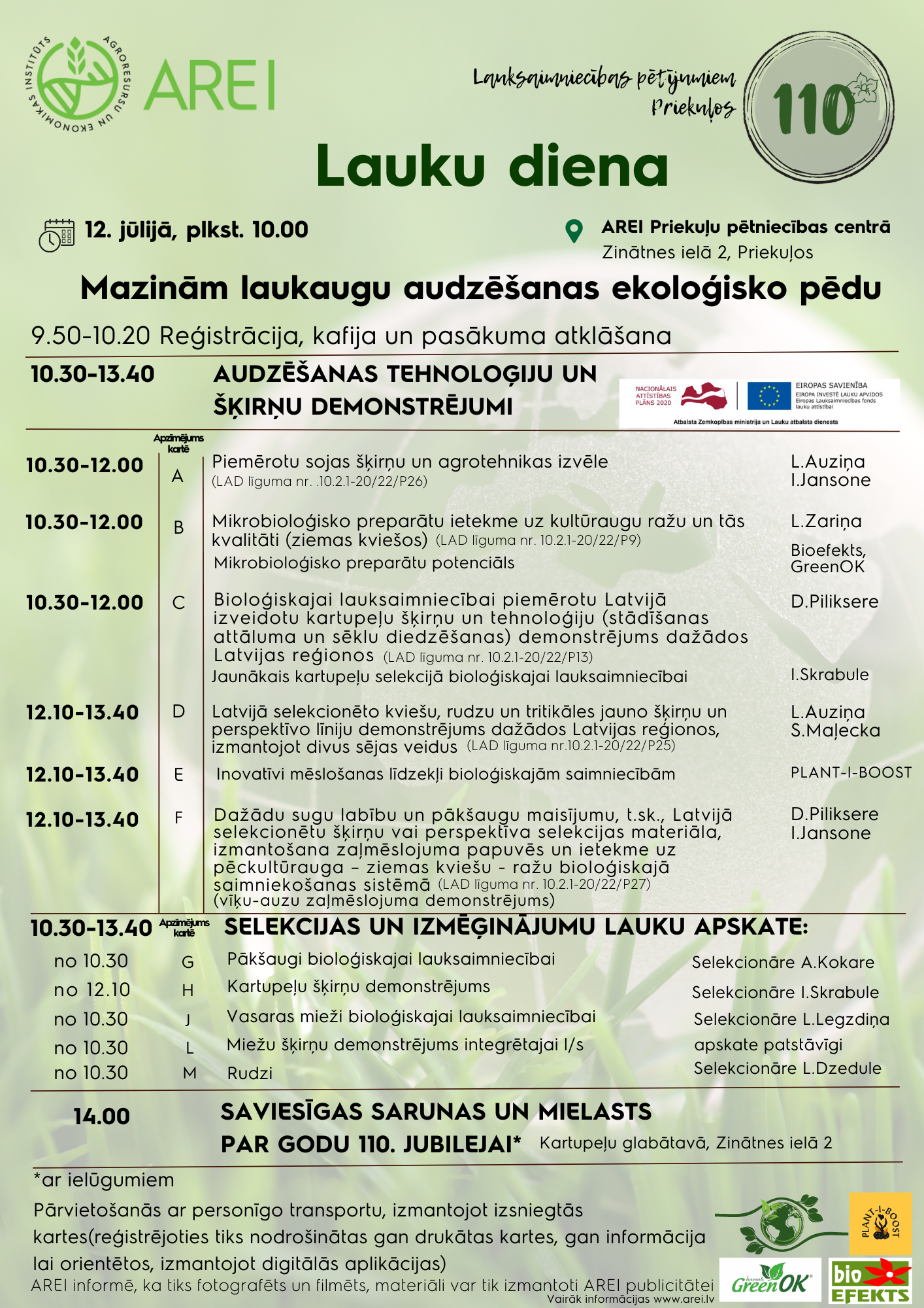12.07.2023. | Audzēšanas tehnoloģiju un šķirņu demonstrējumi (kartupeļi, rudzi, mieži, zirņi, soja, zaļmēslojuma papuves, mikrobioloģisko preparātu pielietošana, u.c.).