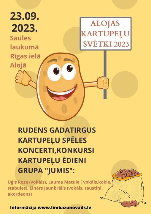 2023.gada 23.septembrī Alojā notiks “Kartupeļu svētki”. Aicinām svinēt svētkus vienam no Alojas atpazīstamības simboliem – KARTUPELIM! Plaši zināmi uzņēmumi: bioloģisko kartupeļu sēklaudzētājs SIA “Aloja - Agro”, pārtikas kartupeļu audzētājs SIA “Tēraudiņi ” un Baltijā lielākais kartupeļu cietes ražotājs SIA “Aloja-Starkelsen”.
