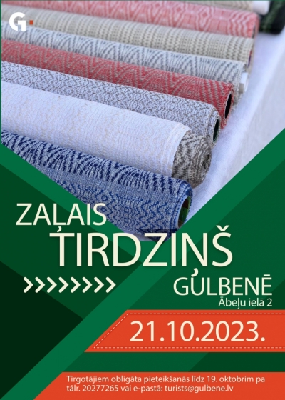 21. oktobrī 9:00 - 13:00 centrālajā skvērā, Gulbenē Zaļais tirdziņš. Tirgotājiem obligāta pieteikšanās līdz 19. septembra 17:00 pa tālr. +371 20277265 vai e-pastā: turists@gulbene.lv