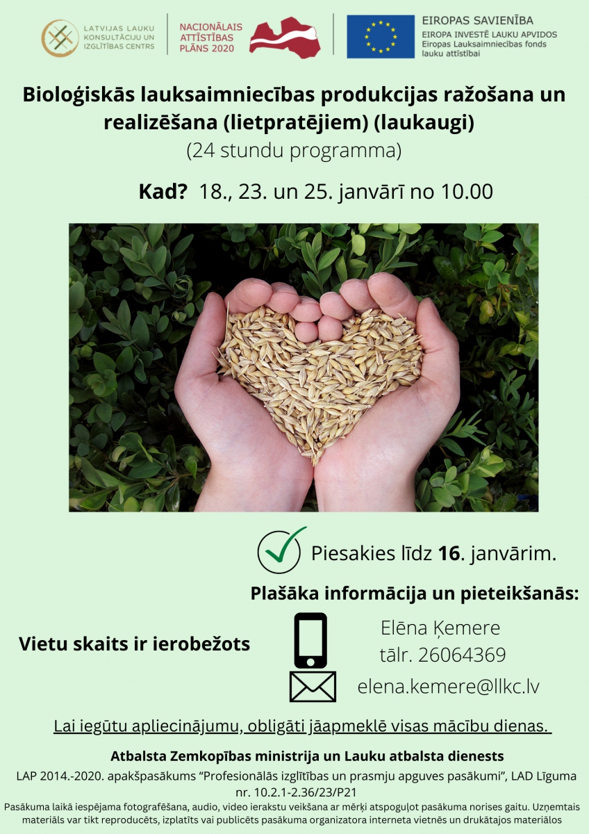 Mācības tiek nodrošinātas Lauku attīstības programmas (LAP) 2014.-2020. apakšpasākuma “Profesionālās izglītības un prasmju apguves pasākumi”, LAD Līguma nr. 10.2.1-2.36/23/P21 ietvaros.