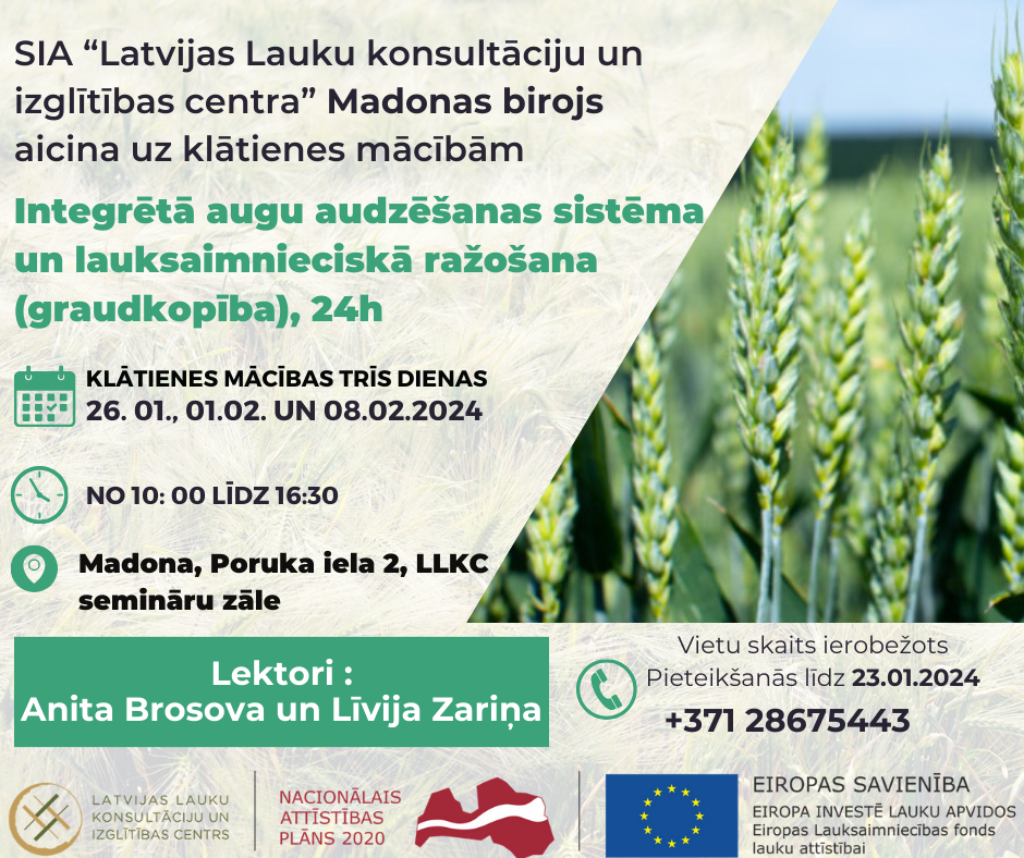Mācību tēma: Integrētā augu audzēšanas sistēma un lauksaimnieciskā ražošana (graudkopība).
