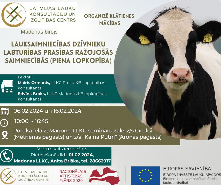 Mācību tēma: Lauksaimniecības dzīvnieku labturības prasības ražojošās saimniecībās (Piena lopi)