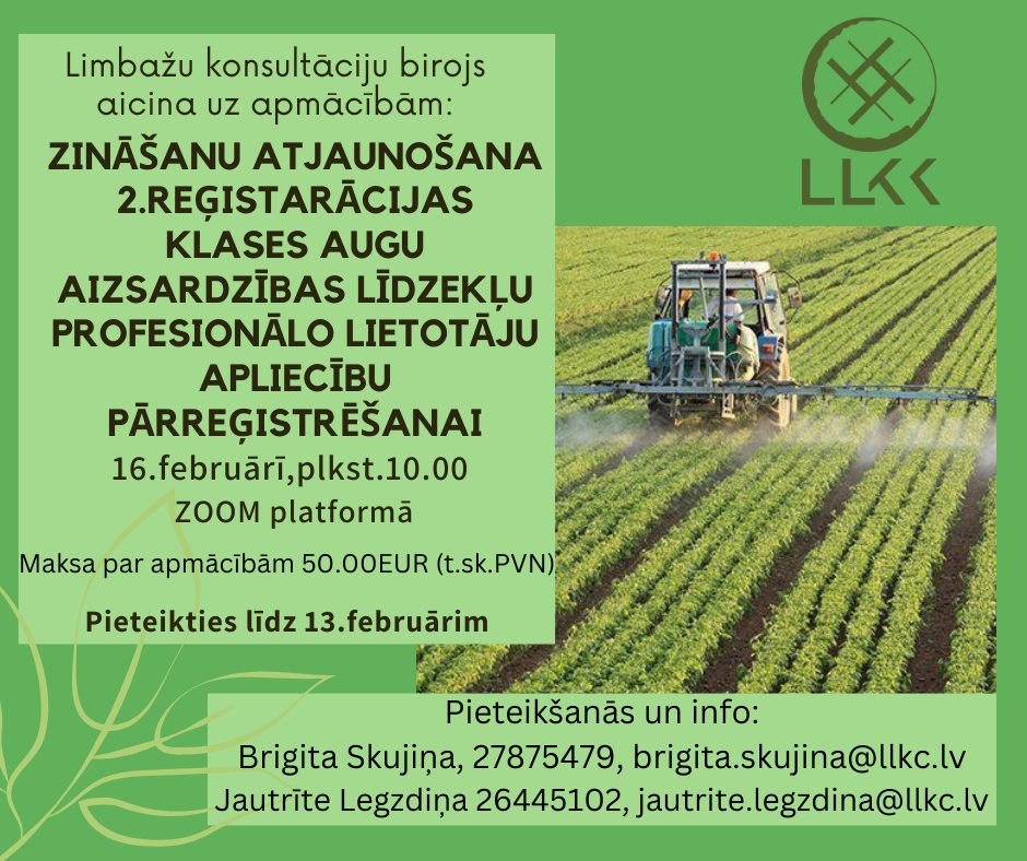 Mācības notiks 16.02.2024. tiešsaistē ZOOM platformā. Mācību sākums 10.00.