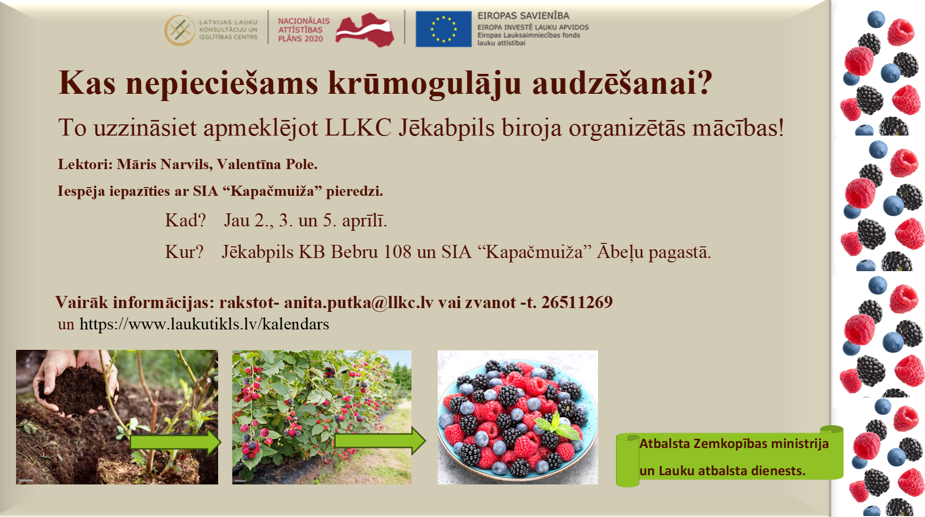 “Integrētā augu audzēšanas sistēma un lauksaimnieciskā ražošana (ogulāji)”.