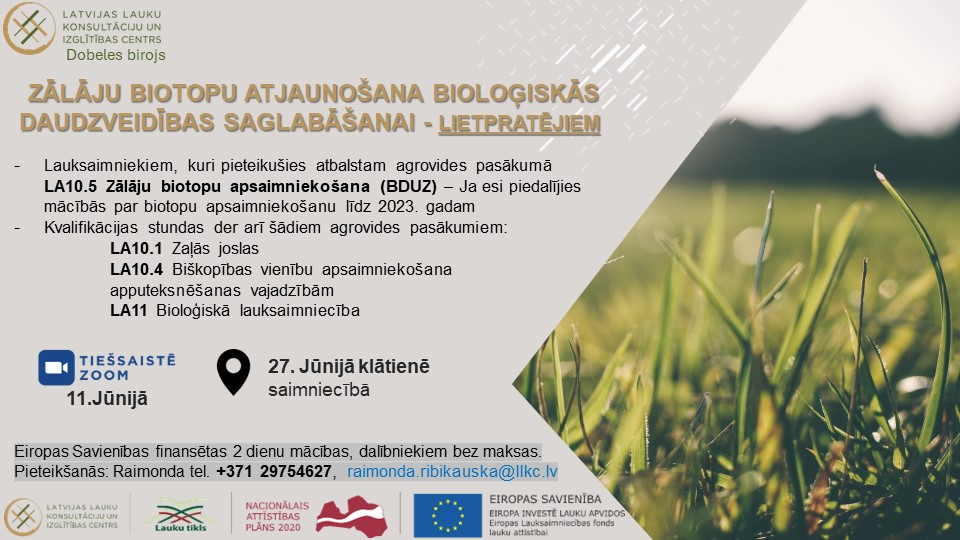 Pieteikšanās mācībām: Raimonda Ribikauska tel. +371 29754627, raimonda.ribikauska@llkc.lv.