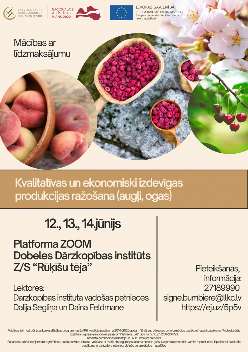 Mācības tiek nodrošinātas Lauku attīstības programmas (LAP) investīciju pasākuma LAP 2014.-2020. gadam “Profesionālās izglītības un prasmju apguves pasākumi”, LAD Līguma nr. 10.2.1-2.36/23/P21 ietvaros.
