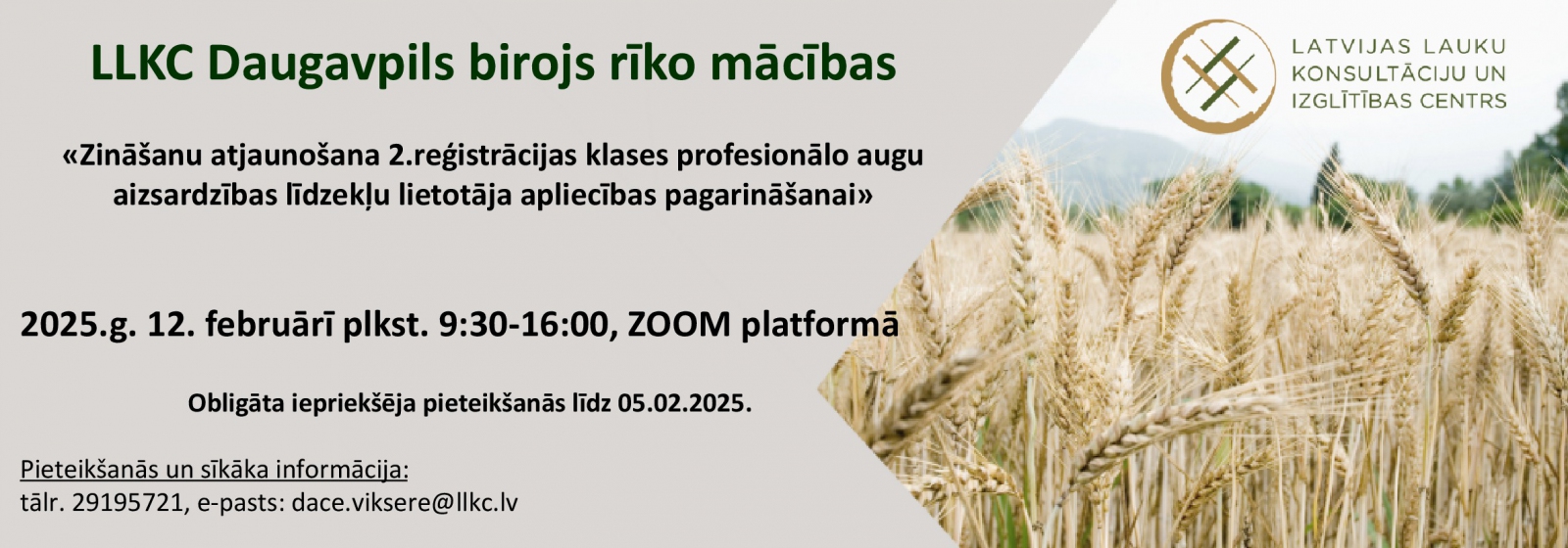 LLKC Daugavpils birojs rīko mācības "Zināšanu atjaunošana 2.reģistrācijas klases profesionālo augu aizsardzības līdzekļu lietotāja apliecības pagarināšanai"