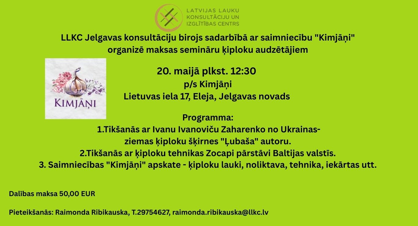 LLKC Jelgavas konsultāciju birojs sadarbībā ar saimniecību "Kimjāņi" rīko maksas semināru ķiploku audzētājiem.