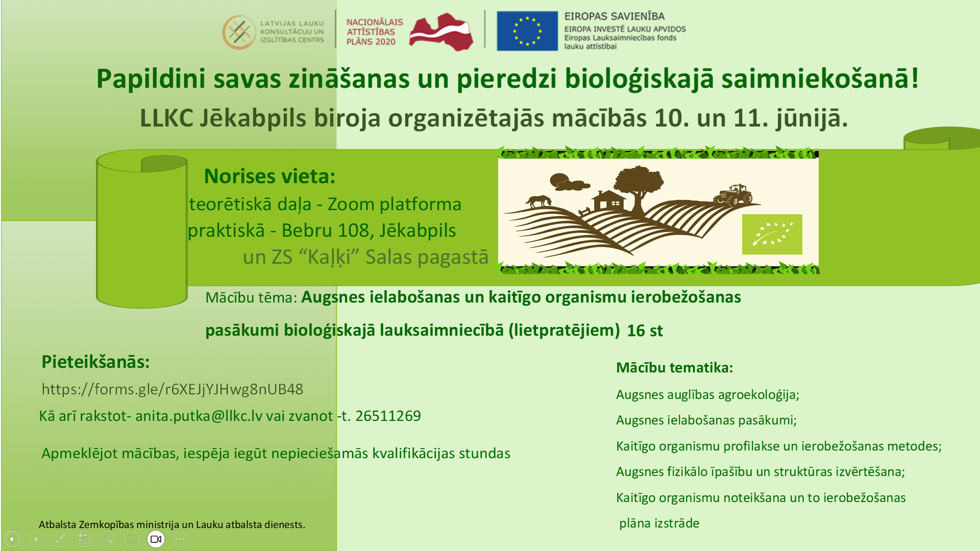 “Augsnes ielabošanas un kaitīgo organismu ierobežošanas pasākumi bioloģiskajā lauksaimniecībā (laukaugi)” lietpratējiem.