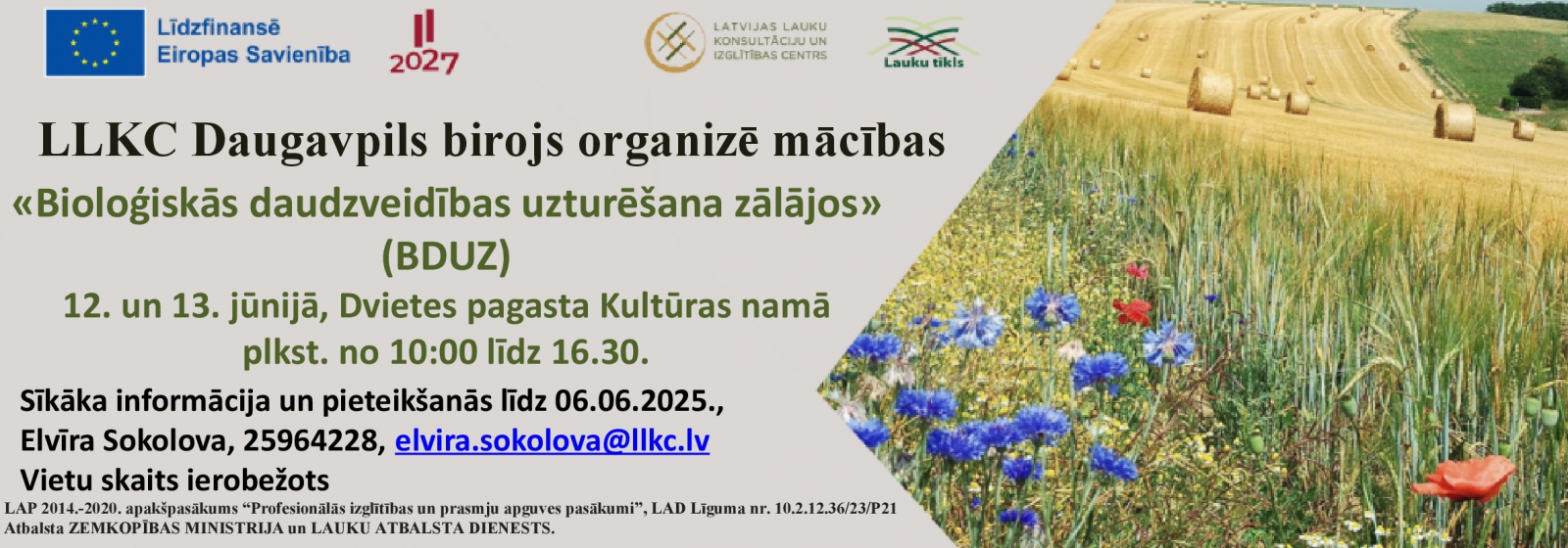 LLKC Daugavpils birojs rīko mācības: Mācības «Bioloģiskās daudzveidības uzturēšana zālājos» (BDUZ)/ 16 stundas