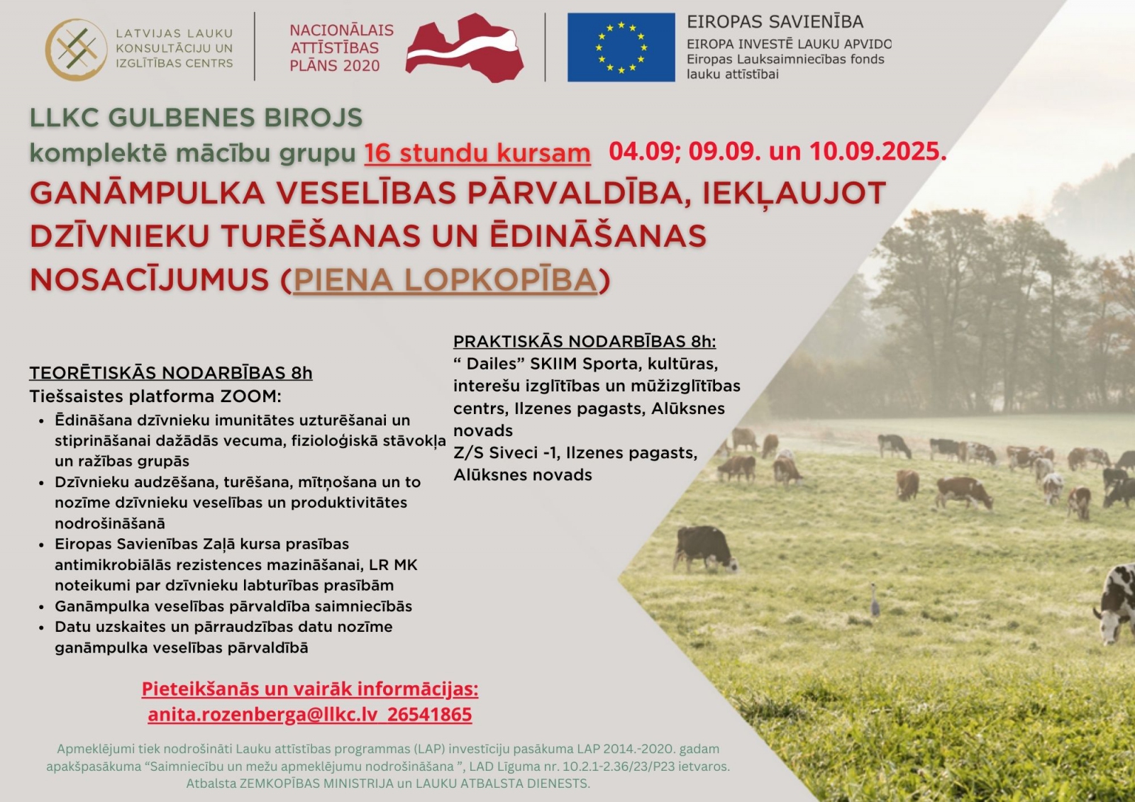 Pieteikšanās un vairāk informācijas: anita.rozenberga@llkc.lv 26541865