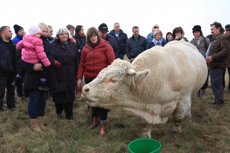 Inga Muižniece, LLKC Kuldīgas nodaļas konsultante lopkopībā, iepazīstināja ar Zālēdāju projekta demonstrējuma mērķi: salīdzināt Šarolē šķirnes zīdējteļu augšanas rādītājus ar un bez spēkbarības piebarošanas, noteikt piebarošanas ekonomisko efektivitāti, jo katrai saimniecībai ir svarīgi pēc iespējas ātrāk izaudzēt labi attīstītu, muskuļotu jaunlopu.