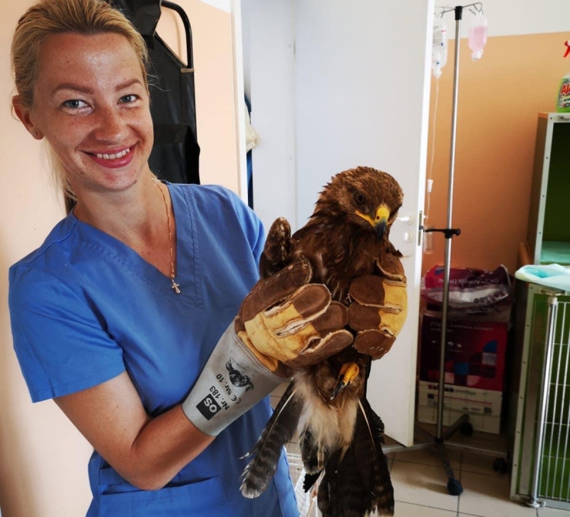 Foto: no Kintijas Kleimanes personīgā albuma: veiksmes stāsts. Veterinārārste Kintija Kleimane ar izglābto mazo ērgli.