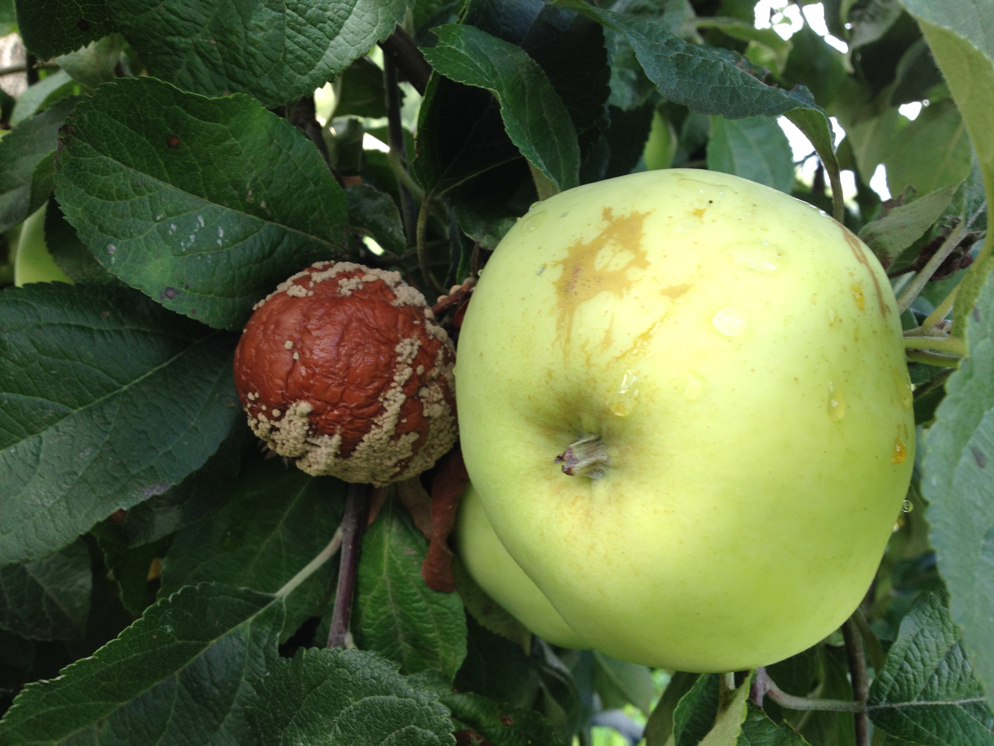 Kas notiek nākamā gada pavasarī? Mitrā laikā dažkārt jau aprīļa otrajā pusē sāk veidoties konīdiju kopas, kas jau pēc augļukoku ziedēšanas var potenciāli inficēt jaunos augļaizmetņus. Tādu nelabvēlīgu scenāriju var veicināt augļu mizas bojājumi, ko primāri izraisa kraupis, tāpat to sekmēs ābolu tinēja bojājumi, par inficēšanās iespēju ir jāuzskata arī mehāniskie bojājumi, kas var rasties putnu knābšanas rezultātā, vējam kustinot zarus, nemākulīgi novācot ražu. Tāpat attīstību sekmē paaugstināts gaisa mitrums. Ābolu tinējs iegraužas ābolā līdz serdei, alojums ir pilns ar ekskrementiem, kas kļūst par pateicīgu vietu augļa virspusē, kur attīstīties šai slimībai.